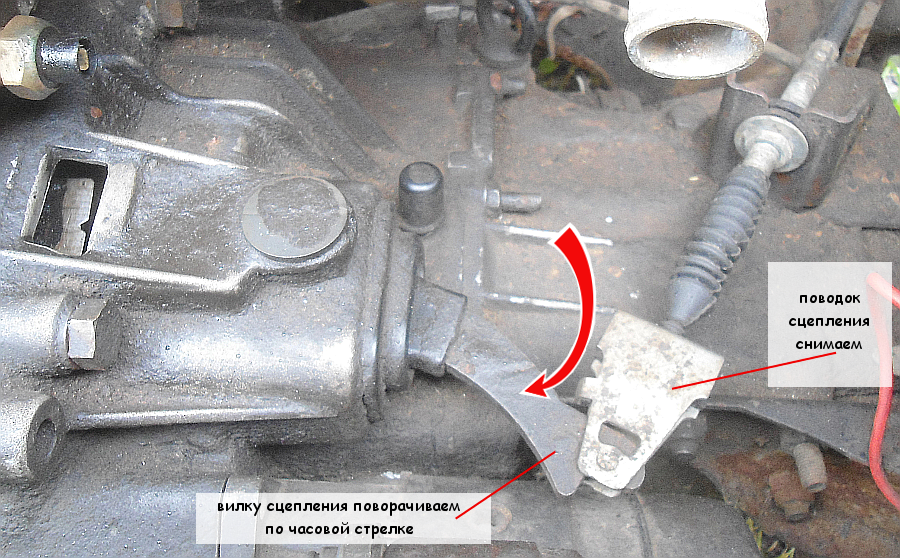 Отсоединяем трос от вилки привода выключения сцепления. Запускаем двигатель и оставляем его работать на холостых. После чего немного поворачиваем вилку по часовой стрелке. Выжимной подшипник выйдет из соприкосновения с диафрагменной нажимной пружиной корзины сцепления и звук должен исчезнуть. Вой исчез – выжимной неисправен и подлежит замене. Если не исчез, предстоит снятие коробки и замена подшипника первичного вала, либо замена в ней масла на более качественное или густое.