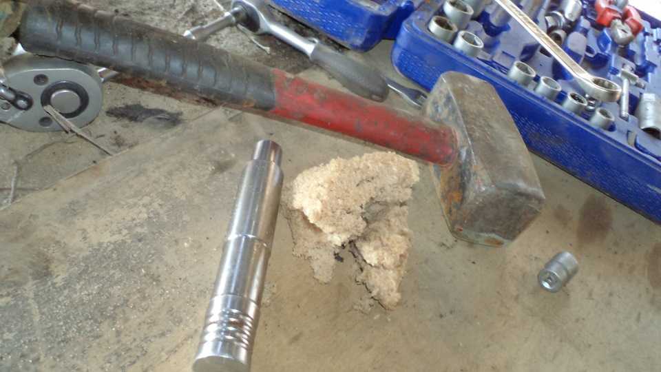 Рулевой наконечник можно снять специальным съемником либо при помощи молотка. Также молоток и наставка нужного диаметра могут потребоваться, если наружный ШРУС прикипел на шлицах к ступице (о методах замены подшипников без снятия полуоси упомянуто на видео, но в большинстве случае действительно проще открутить ступичную гайку).