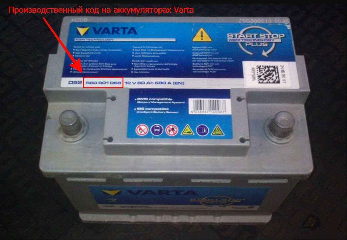 - Varta: в производственном коде четвёртая цифра — год выпуска, пятая и шестая — месяц (17—январь, 18—февраль, 19—март, 20—апрель, 53-май, 54—июнь, 55—июль, 56—август, 57—сентябрь, 58—октябрь, 59—ноябрь, 60—декабрь).