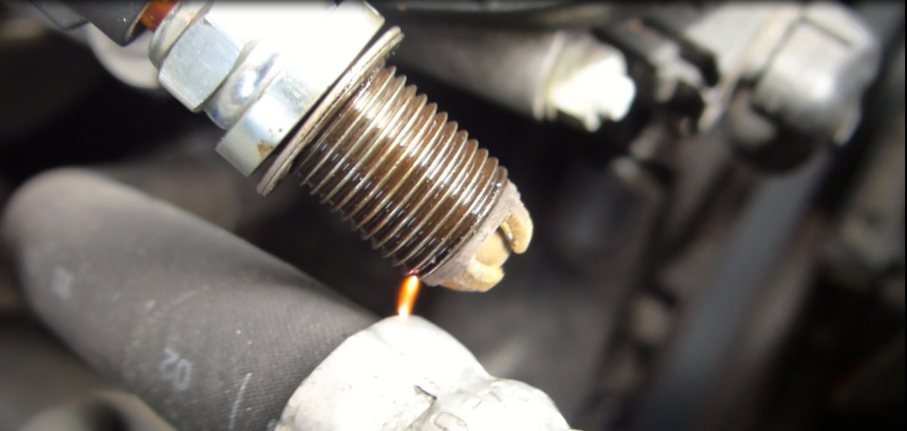 - Свечу или свечи зажигания залило топливом – искра либо отсутствует, либо очень слабая, сами свечи мокрые;