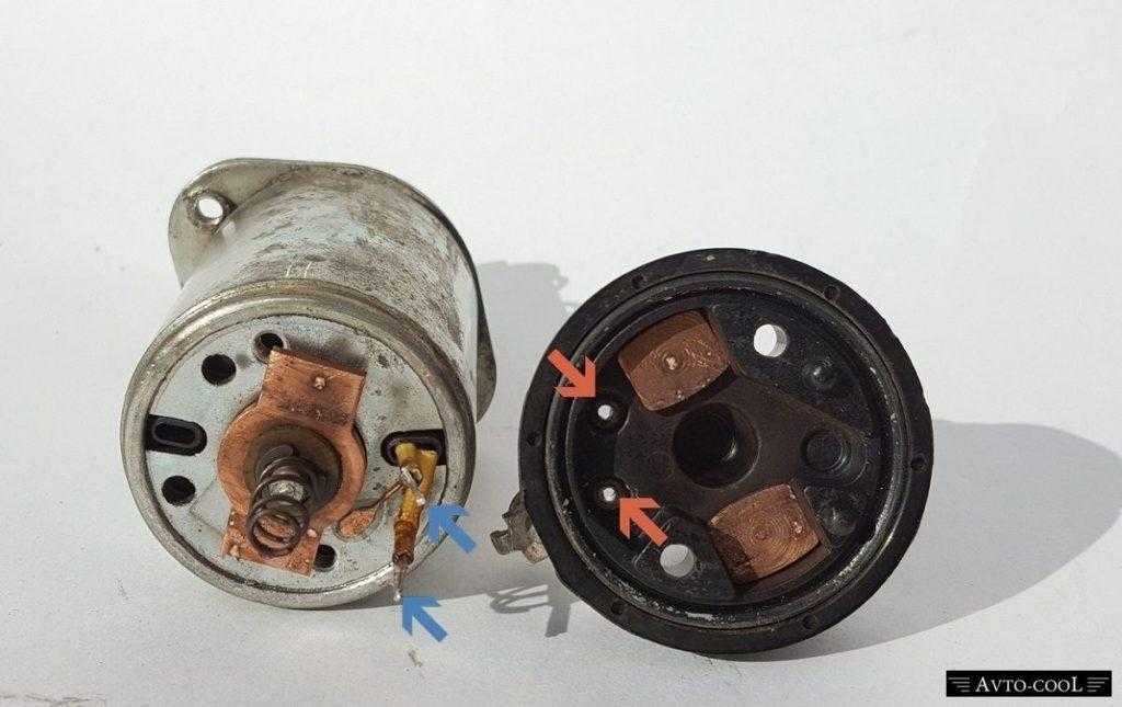 Далее следует перемкнуть контакты, которые представлены двумя медными болтами, расположенными на крышке реле. Если прибор начнет крутиться, то, скорее всего, необходим ремонт втягивающего реле.