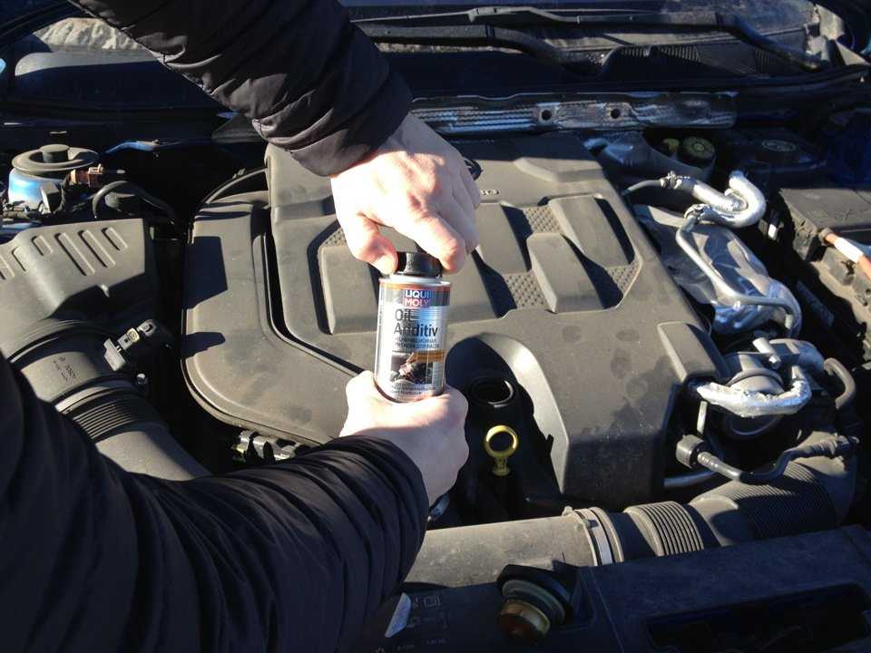 - Затем через маслоналивную горловину добавить присадку к моторному маслу.
