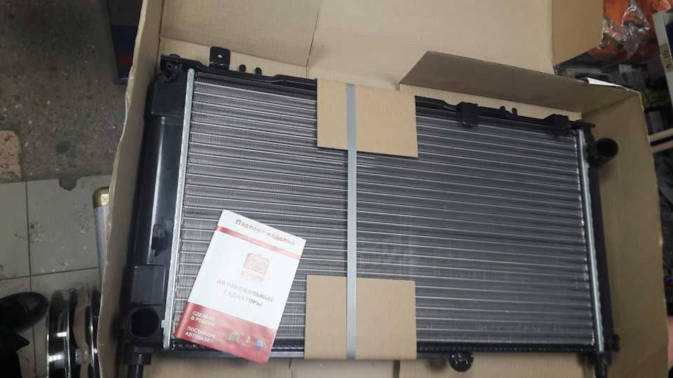 Радиатор состоит из двух вертикальных пластмассовых бачков (левый — с перегородкой) и двух горизонтальных рядов круглых алюминиевых трубок, проходящих сквозь охлаждающие пластины. Трубки соединены с бачками через резиновую прокладку. Жидкость подается через верхний патрубок, а отводится через нижний. Рядом с впускным патрубком расположен тонкий патрубок пароотводя-щего шланга. На радиаторе установлен кожух с электовентилятором. В нижней части правого бачка находится сливная пробка. радиатор калина Вентилятор поддерживает тепловой режим работы двигателя, включается через реле по сигналу контроллера.