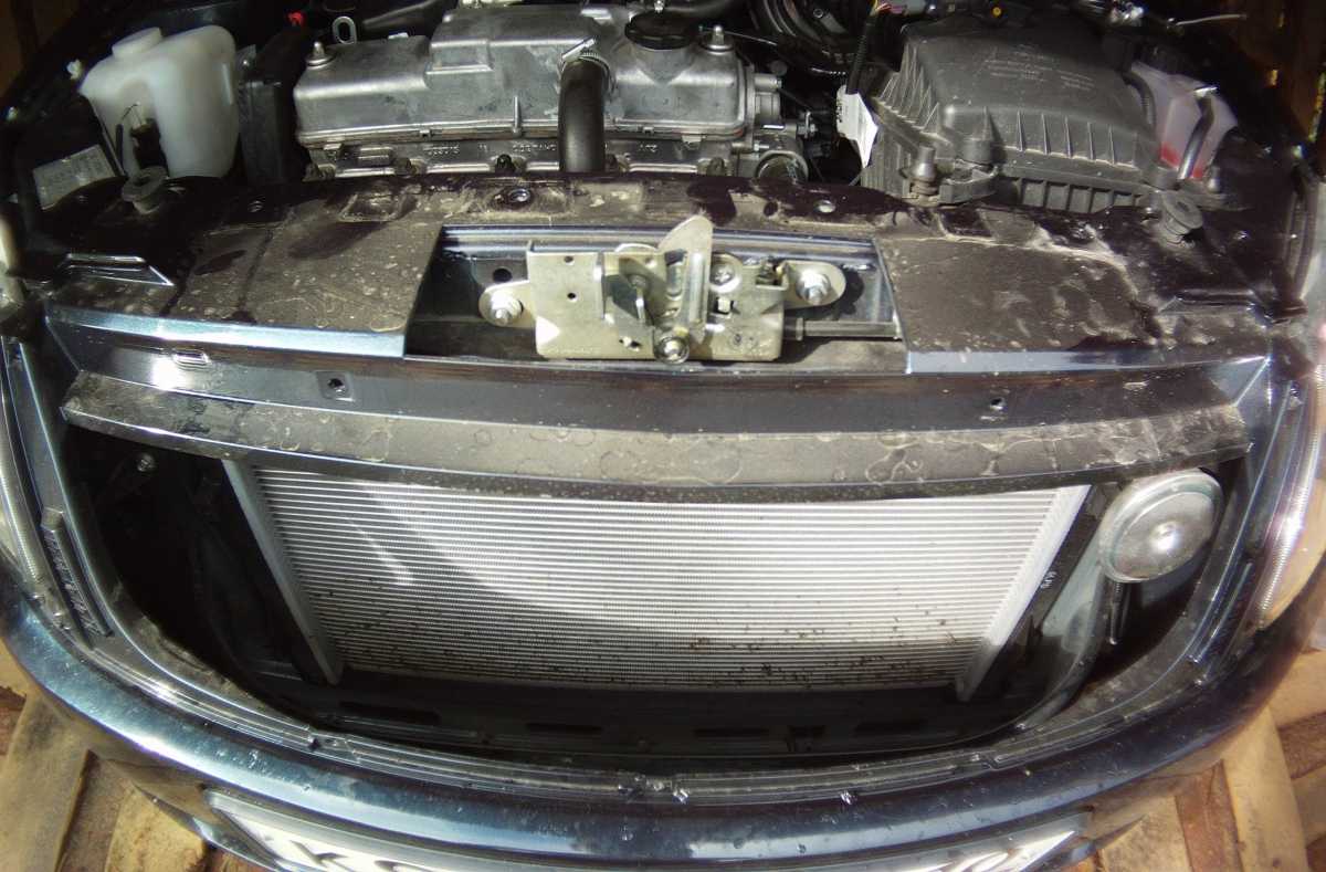 - Со стороны моторного отсека осматриваем поверхность радиатора на наличие потеков, следов утечки антифриза (тосола).