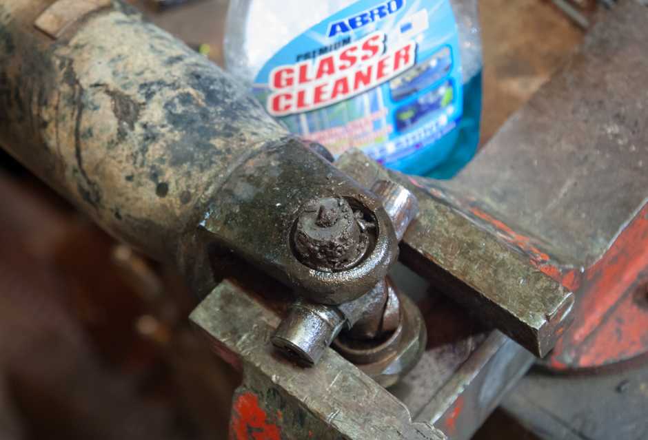Как мы говорили выше, крестовины находятся в крайне агрессивной среде, поэтому часто имеют вид как на фото. Перед началом работы, очистим поверхность с помощью очистителя карбюратора, так же можно использовать профессиональный очиститель двигателя