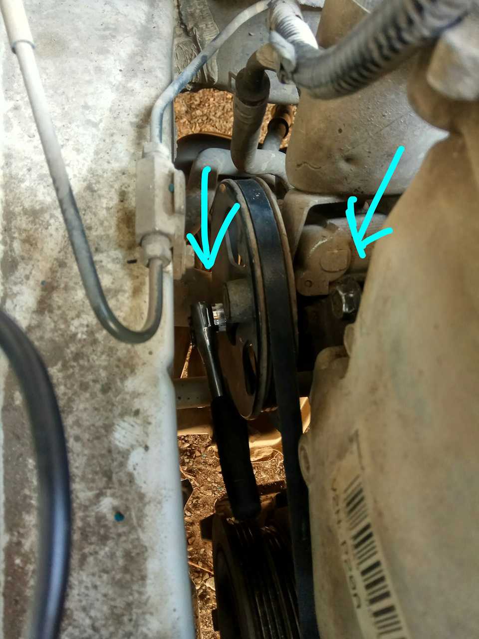 Для того чтобы снять ремень, нужно придавить генератор к блоку двигателя и он легко снимется с направляющих!Если кто-то собирается менять сразу оба ремня, то я бы посоветовал начать с ремня ГУРа, так как там по сложнее и нужный болт прейдется откручивать через шкив насоса ГУРа, а чтобы попасть головкой в него нужно прокрутить шкив…это очень удобно делать крутя шкив генератора используя ключ, чем руками корячиться!