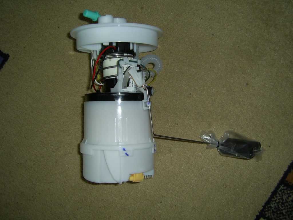 Топливный насос необходимо установить так, что его выходной штуцер совпадал с выемкой в верхней крышке. Поэтому для начала отсоедините от колбы вставку с сеткой грубой очистки (держится на нескольких маленьких защелках).