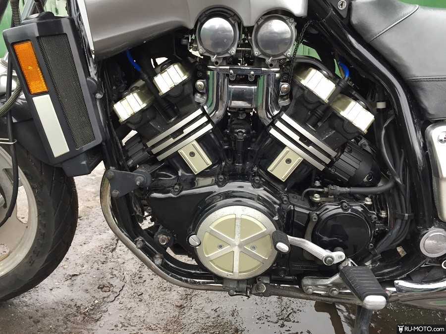 Как мы уже успели упомянуть, V-образный четырехцилиндровый двигатель перекочевал к нам от туристического мотоцикла Yamaha XVZ 1200 Venture. Имел четыре клапана на цилиндр и оснащен жидкостной системой охлаждения.