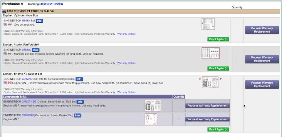 Из выхлопной промежутками валил густой белый дым. В общем приговорили к переборке верхней части двигателя вплоть до замены ГБЦ. Учитывая редкость запчастей на Equinox на нашем рынке, озадачился покупкой всего необходимого заранее.Заказал вот такой большой ремкомплектENGINETECH C207K5 (он состоит из 2-х: верхний и нижний относительно мотора. Можно купить по отдельности), а также комплекты болтов ENGINETECH IMB100, ENGINETECH HB167
