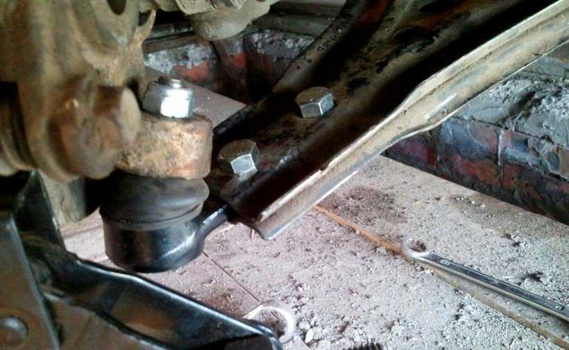 Если развал имеет небольшое отклонение, то производится его регулировка. Для этого придется откручивать два болта соединяющие кронштейн стойки амортизатора и поворотный кулак и путем сдвигания последнего добиться нормативных показателей.