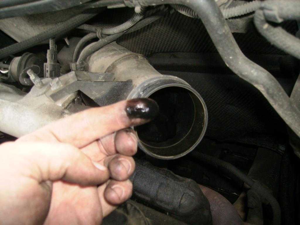 В процессе работы турбины образуется разрежение. Если воздуха не хватает, давление значительно вырастает, масло вытягивается из турбокомпрессора.