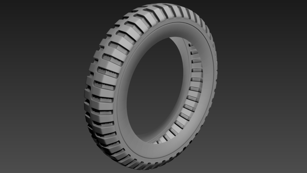 Например, давайте посмотрим, как мы создавали покрышку. Мы начали с плоскости, на которой смоделировали один сектор шины. Поскольку этот паттерн повторяется 80 раз, мы просто сделали нужное количество копий.