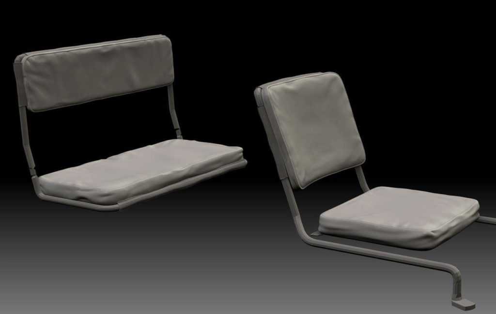 Объекты, созданные из ткани ( например, обивка сидений или кожух рычага переключения передач) лучше всего делать в Zbrush. Перед экспортом хай-поли модели из Zbrush воспользуйтесь Decimation Master. Он значительно сократит полигонаж без визуальных искажений, что упростит вам процесс запекания текстур.