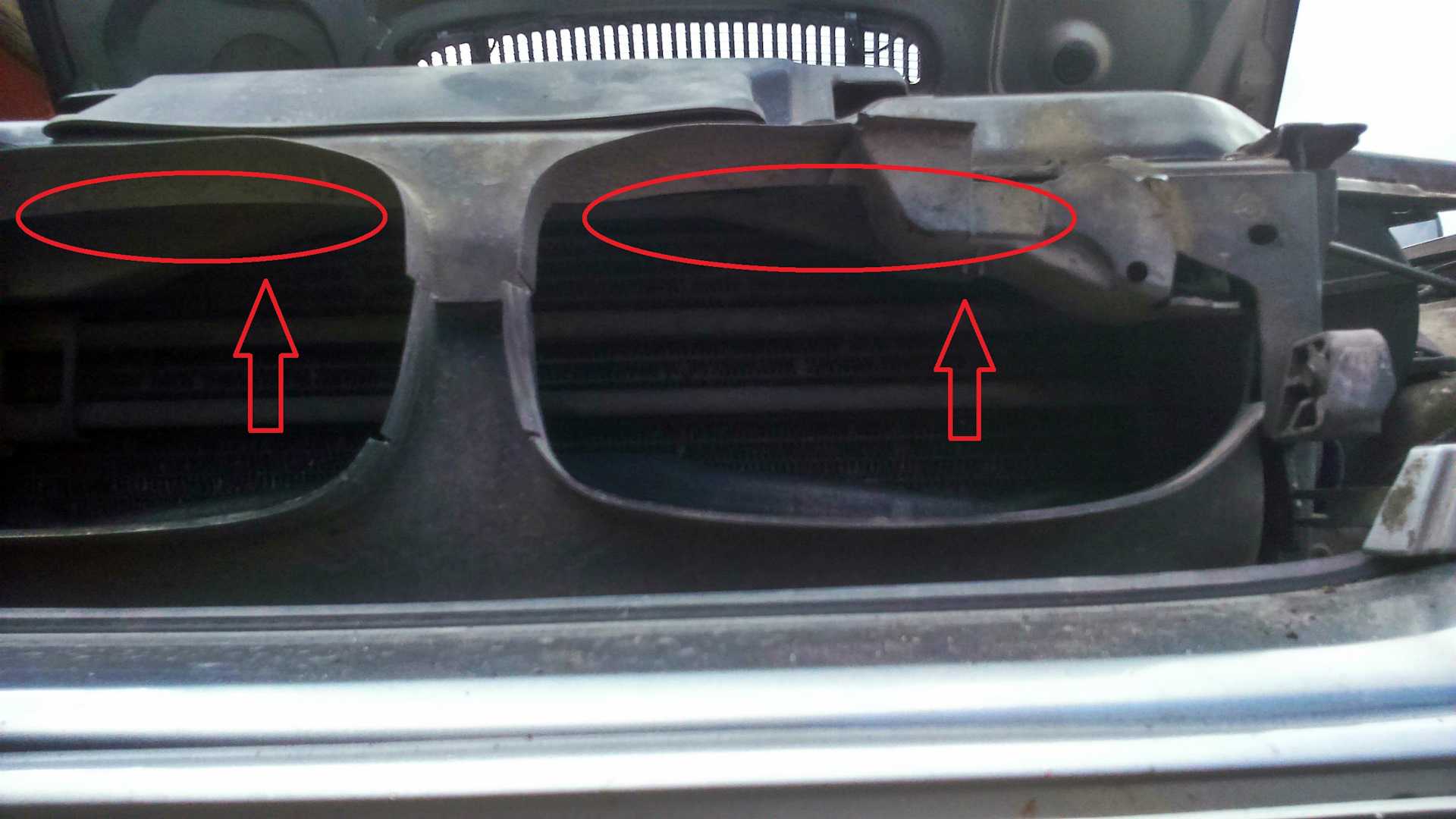 - снять левую (по ходу движения) «ноздрю». Будьте готовы к тому, что она может сломаться. Не забывайте о ЛКП;
