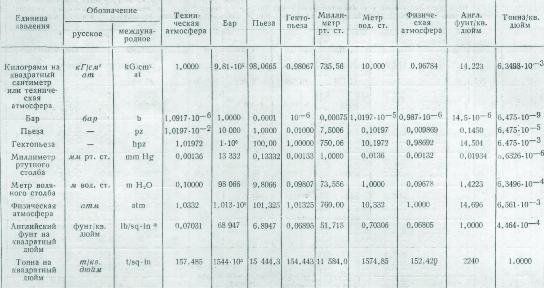 Перевод кГ/см2 (технические атмосферы) в англ. фунт./кв. дюйм