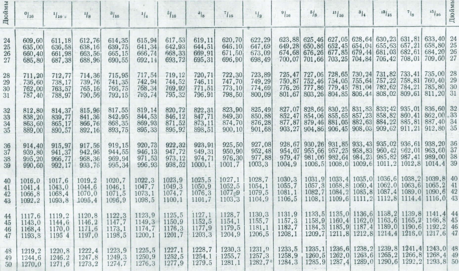 Перевод дюймов в миллиметры Через 1/16 дюйма; 1 дюйм = 25,400 мм; 1 мм = 0,03937 дюйма