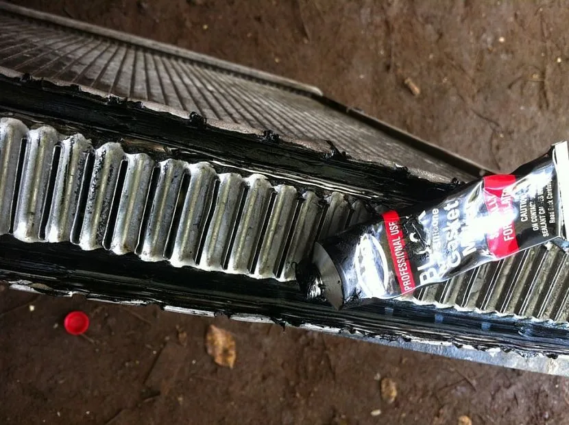 В некоторых случаях трещина появляется в труднодоступном месте. В этом случае герметик наносится по всей длине радиатораИсточник Chebo.pro