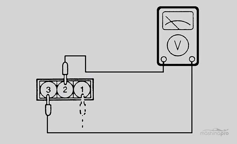 подключаем один щуп тестера к импульсному проводу, а второй замыкаем на массу