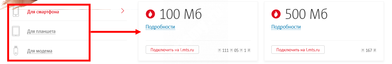 Для смартфона предлагается 2 основных варианта: 100 или 500 Mb