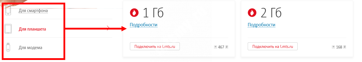 Планшетные опции уже относятся к гигабайтовым вариациям услуги. Объём трафика всё ещё не особенно велик, но способен удовлетворить абонентские потребности в связи.