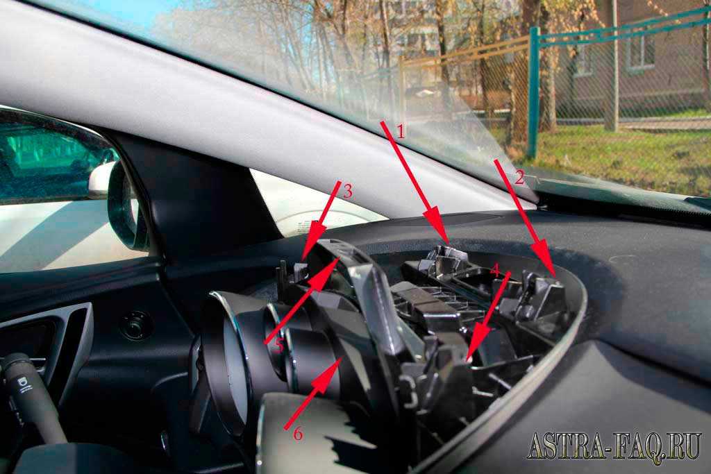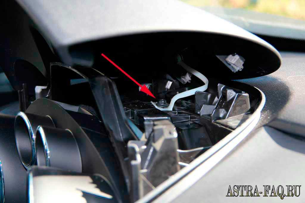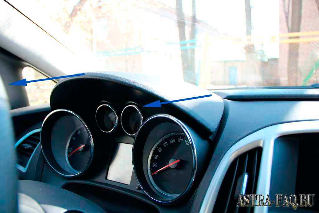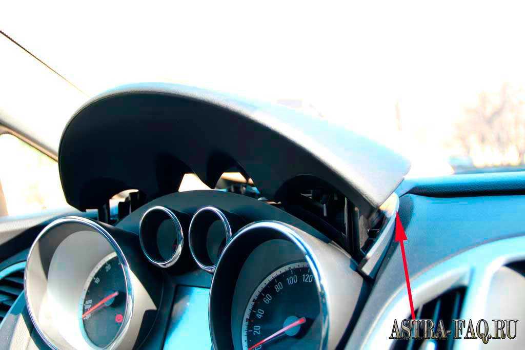 Устранение скрипа козырька панели приборов на Opel Astra J.
