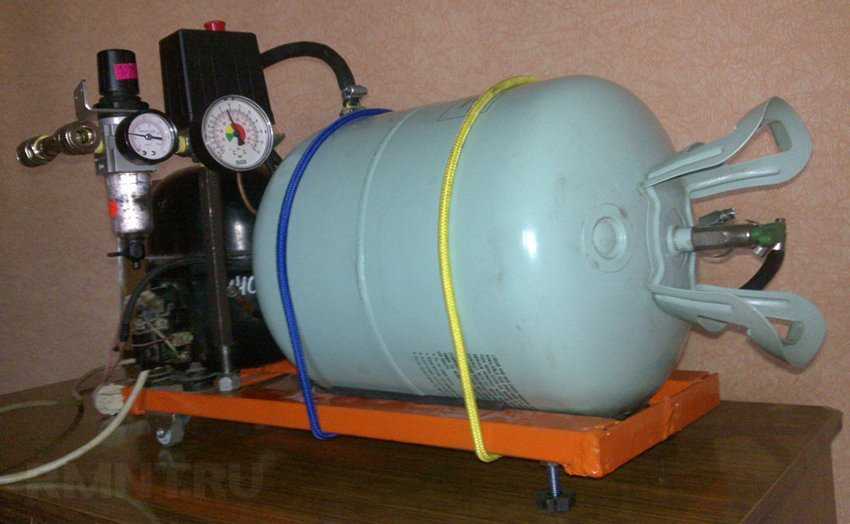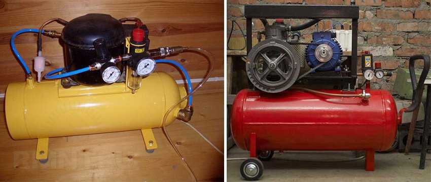 Если при выборе компрессоров и моторов народные умельцы остановились на узлах от холодильников и автомобилей, то в качестве ресиверов чего только не используют — даже бутылки из-под шампанского и «Кока-Колы» (при давлениях до 2 атм). Перечислим несколько стоящих идей.