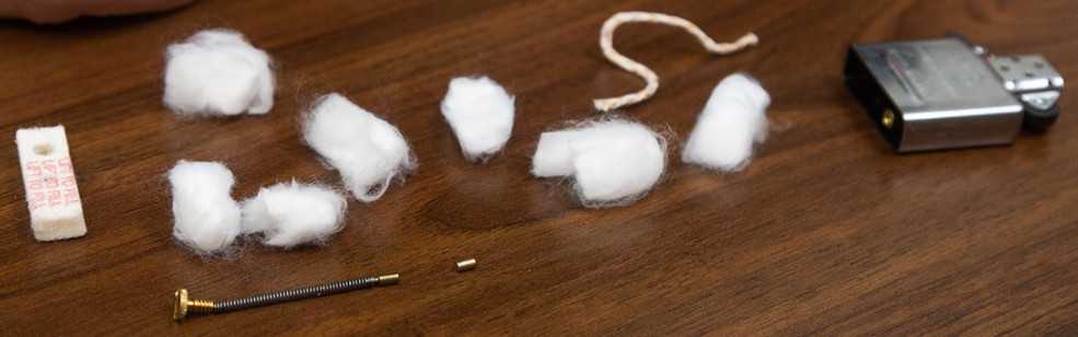 - Возьмите топливо и пропитайте им материал для заправки, обычно это вата;