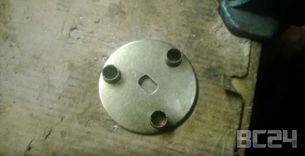 Важный нюанс, электропривод ставится железной крышкой к сидению, также в ней нужно будет просверлить дырку 13 мм или немного больше. Также будет железный чопик, который крутит катушку стеклоподъемника — выбрасываем.