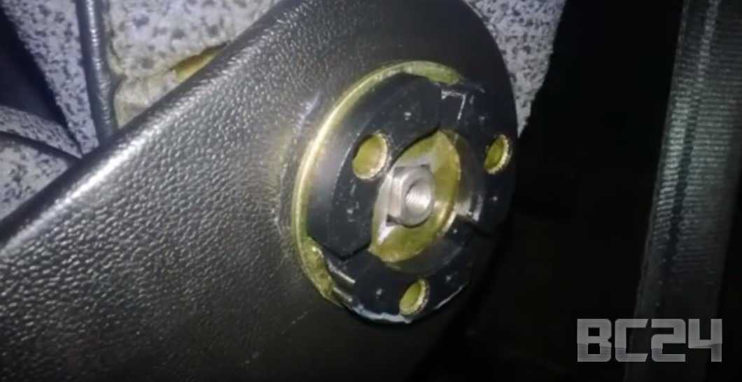 - Демонтировать сидение. Для этого нужно кресло максимально откатить назад и открутить переднее крепление салазок, так же и наоборот, отодвинуть кресло вперед и открутить задние части салазок.