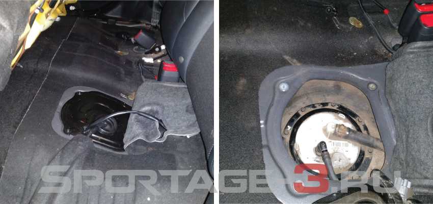 Чтобы добраться до бензонасоса необходимо в багажнике под полом, где запаска, открутить один болт, далее поднимаем сиденье заднего ряда, не забываем разъединить фишки обогрева, и убираем его в сторону, смотрим фото: