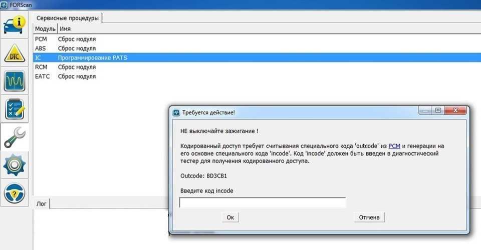 Программа запрашивает у нас outcode Для этого нам требуется перейти на сайт autokeyprog.com где ранее мы зарегистрировали аккаунт. Переходим на вкоалку Services и выбираем PATS login calculator после вводим outcode полученный в программе forscan и генерируем incode который требуется ввести в forscan.