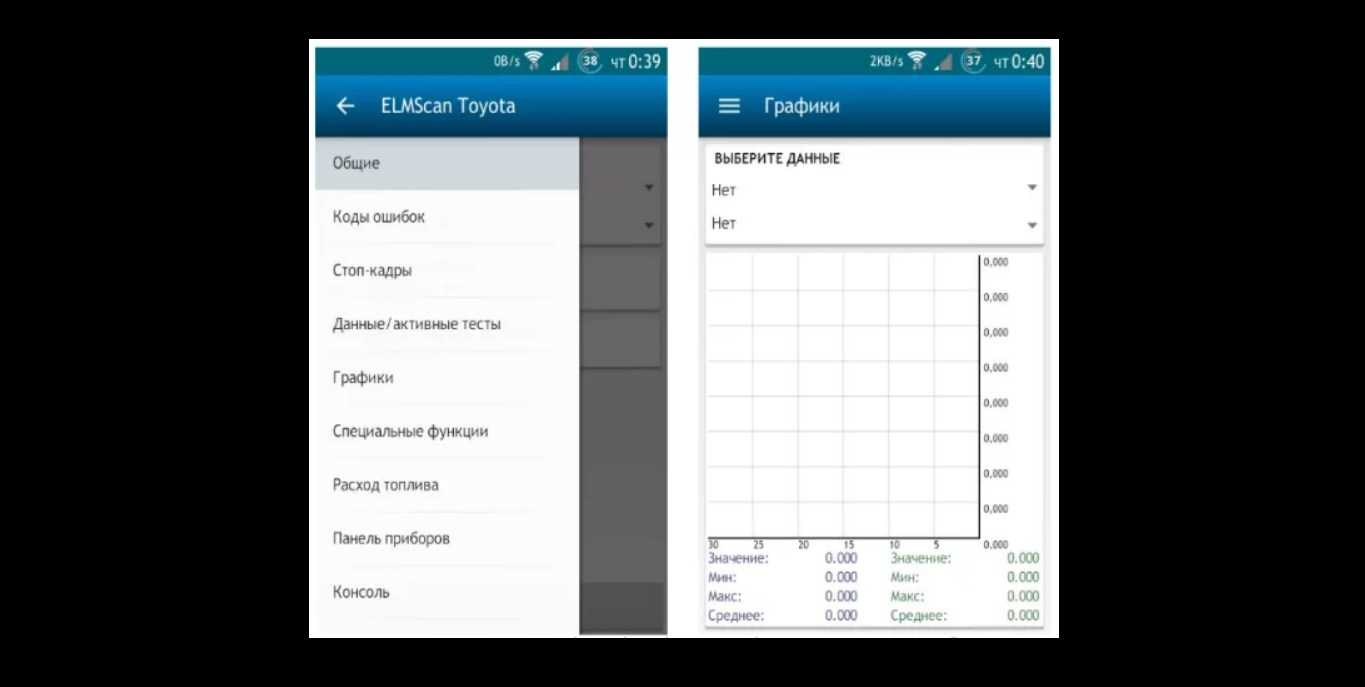 Так же отдельно стоит отметить программу для ELM327 для диагностики автомобилей Тойота — ELMScan Toyota, это специальная программа для диагностики двигателей и ЭБУ автомомбилей Тойота и Лексус. Она так же проста в использовании и имеет русскоязычный интерфейс.