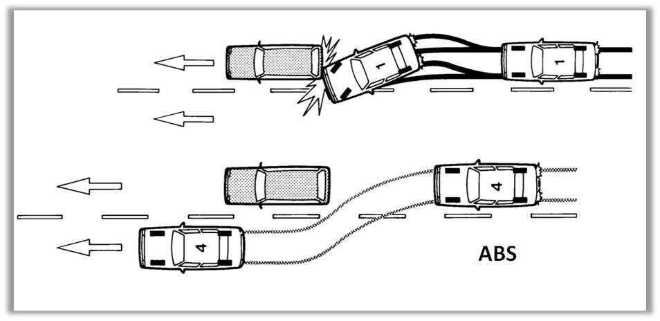Основная задача ABS – препятствовать полной блокировке колёс при торможении в экстренной ситуации