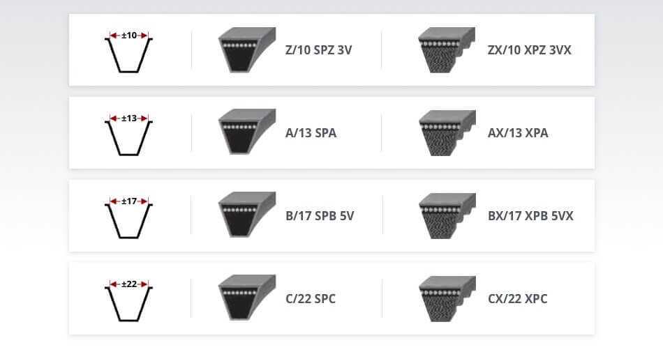 | Z, A, B, C, D, E | SPZ, SPA, SPB, SPC | SPZ, SPA, SPB, SPC | SPZ, SPA, SPB, SPC | AX | XPZ, XPA, XPB, XPC | 3L, 4L, 5L | |