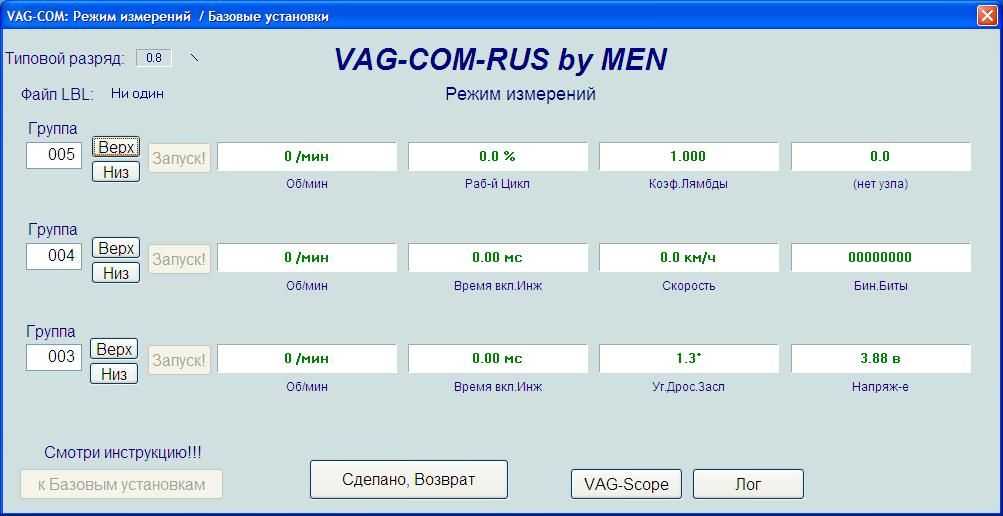 - Потом надо войти в базовые установки (04) и перейти к режиму измерения;