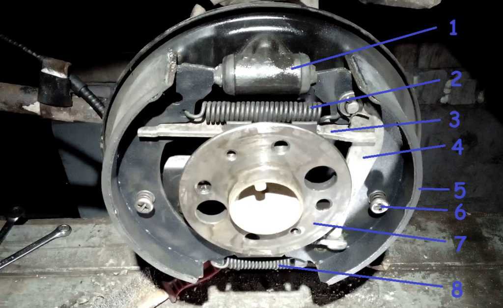 Кроме колодок и барабана, к составным элементам рассматриваемых устройств относятся: