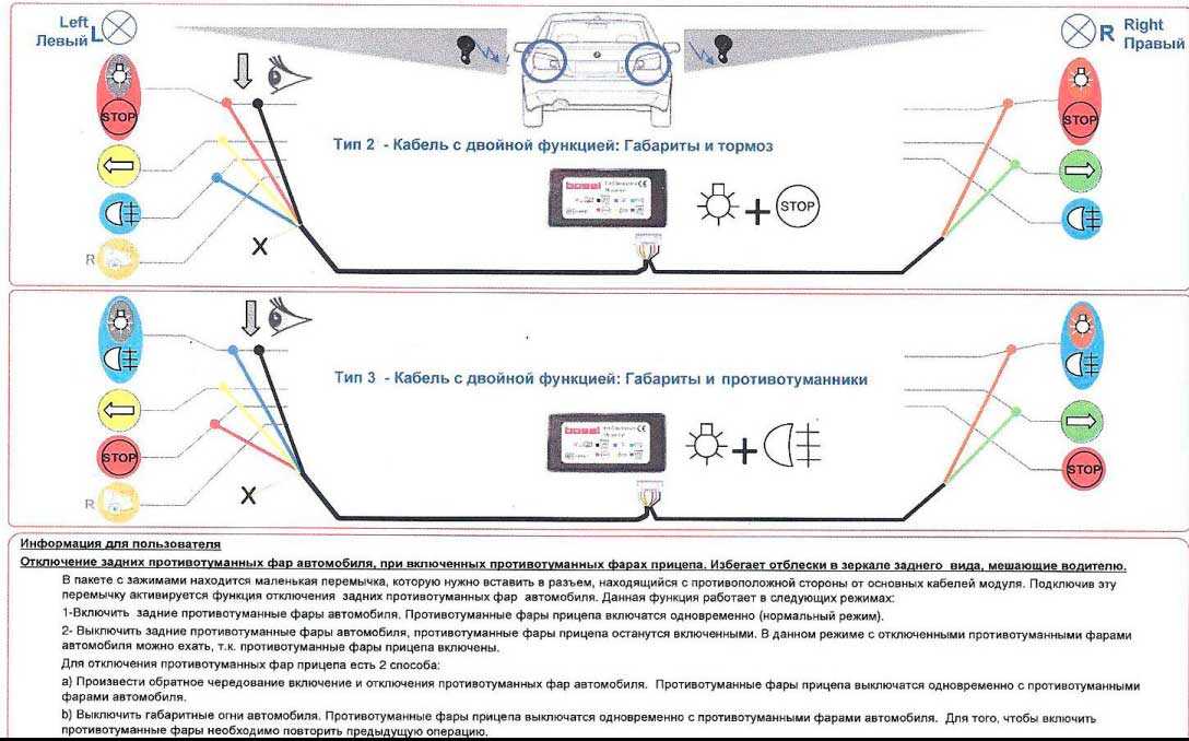 Если вмешаться в проводку, на приборной панели появится ошибка, а все освещение транспортного средства будет отключено. Для решения проблемы нужен блок согласования, о котором упоминалось выше. Лишь после его подключения можно соединять розетки прицепа и фаркопа с учетом имеющихся требований.