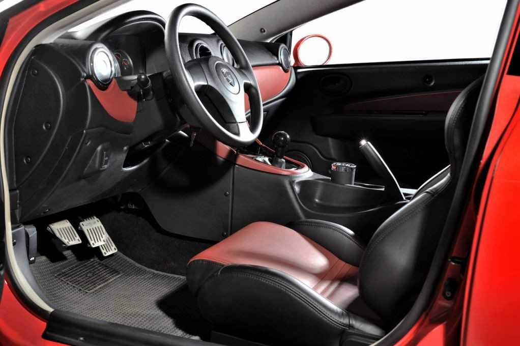 Открывая дверь сразу можно обратить внимание на великолепные кожаные кресла, сделаны под спортивный стиль. Отличная боковая поддержка придаст уверенности на поворотах