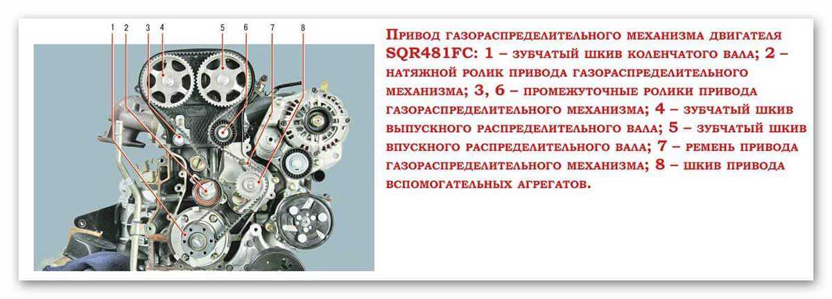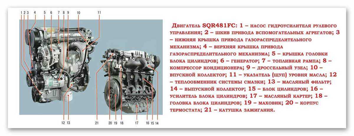 SQR484F – бензиновый 16 клапанный мотор с двумя распредвалами и ременным приводом. Устанавливался на Tiggo 3 (4, 5, 5FL, 7). При обрыве ремня гнет клапана.